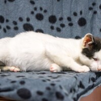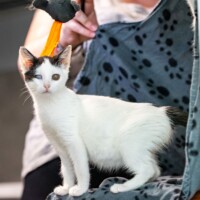 Chłopak urodził sie w lipcu 2025, jest odrobaczony, zaszczepiony, zachipowany a testy fiv/felv ma ujemne. Ma energii tyle co jego rodzeństwo…szaleje, wspina się, prowokuje rodzeństwo do zabawy. Uwielbia czynnie uczestniczyć w kocim MMA