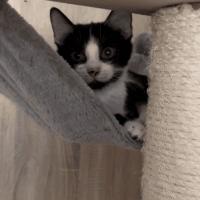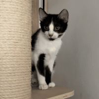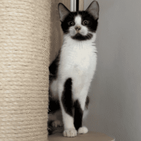 Urodzona na początku maja 2025 roku, czarno-biała piękność o ogromnych oczkach, które same proszą o czułość.