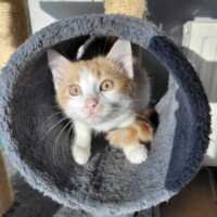 Ten młodziutki kocurek nie miał łatwego startu — bezdomność odcisnęła na nim swoje piętno i przez długi czas żył w strachu. Dziś jednak robi ogromne postępy. Kiedyś skryty w najciemniejszym kącie… teraz z ciekawością wącha człowieka i pozwala się delikatnie pogłaskać.