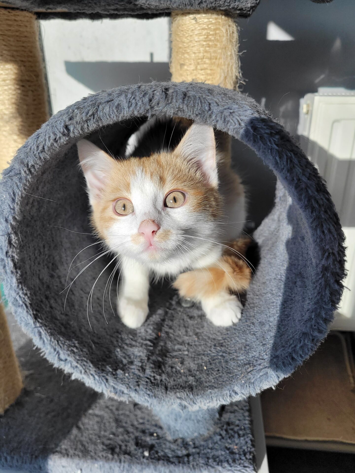 Największą radość daje mu zabawa z człowiekiem — wtedy znika cały lęk, a na pierwszy plan wychodzą jego dziecięca energia i ciekawość świata. 🎾😺