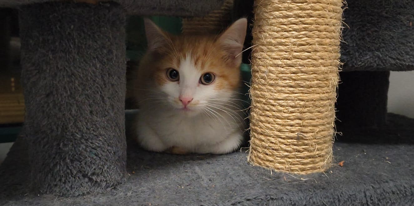 Ten młodziutki kocurek nie miał łatwego startu — bezdomność odcisnęła na nim swoje piętno i przez długi czas żył w strachu. Dziś jednak robi ogromne postępy. Kiedyś skryty w najciemniejszym kącie… teraz z ciekawością wącha człowieka i pozwala się delikatnie pogłaskać.