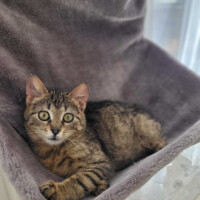 Jestem pod opieką lekarzy i ludzi, którzy nauczyli mnie, że człowiek nie jest straszny. Jestem małą kotką, która bardzo chce kochać i być kochana. I drapana po pupci! ![]()