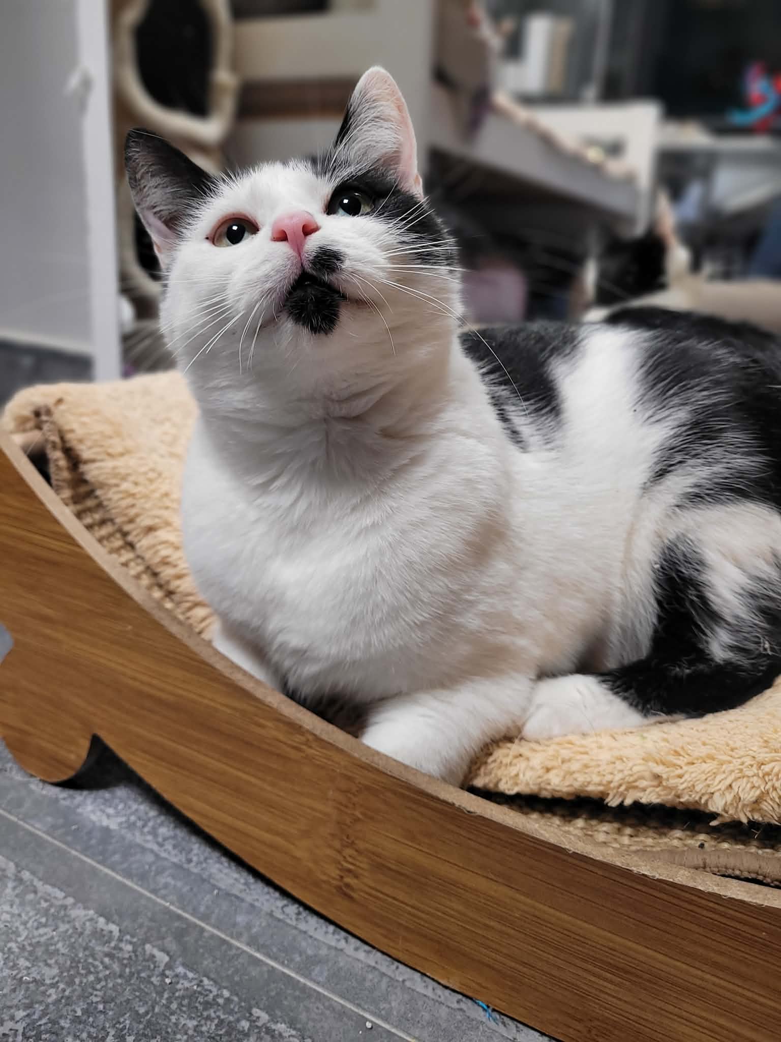 Tyfona urodziła się we wrześniu 2023 roku i trafiła do nas jako młoda mama. Jej kocięta dawno znalazły swoje domy, a ona sama stała się prawdziwą „mamą kociarni” — spokojną, pewną siebie i bardzo szanowaną 😄