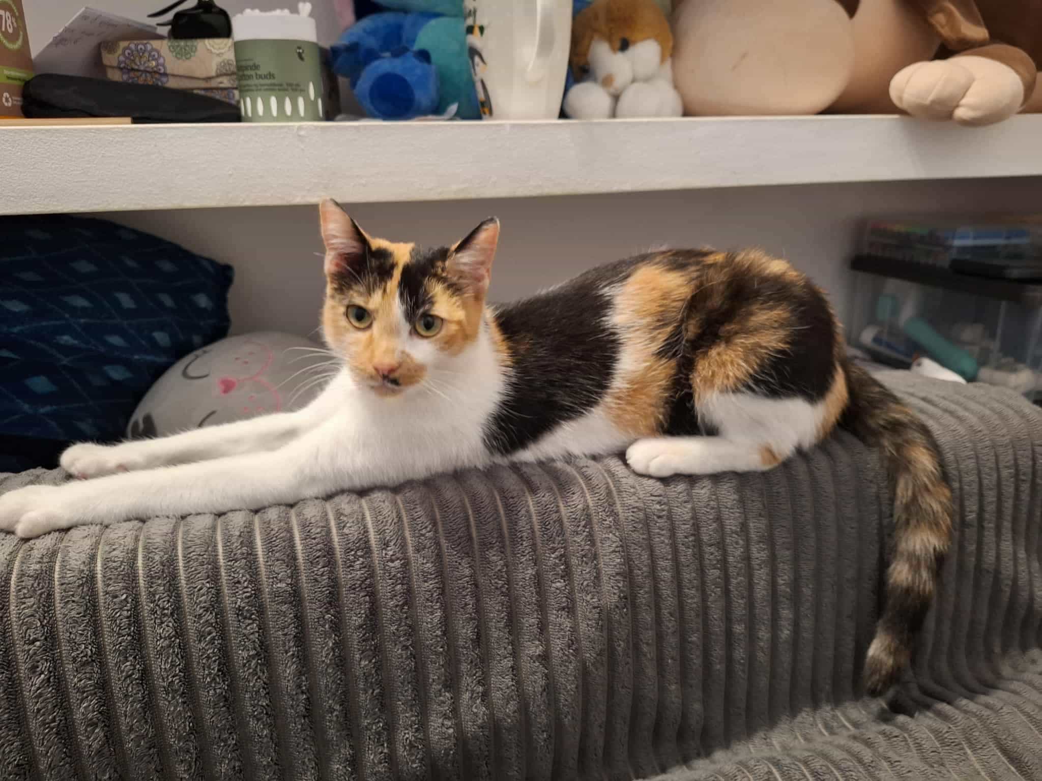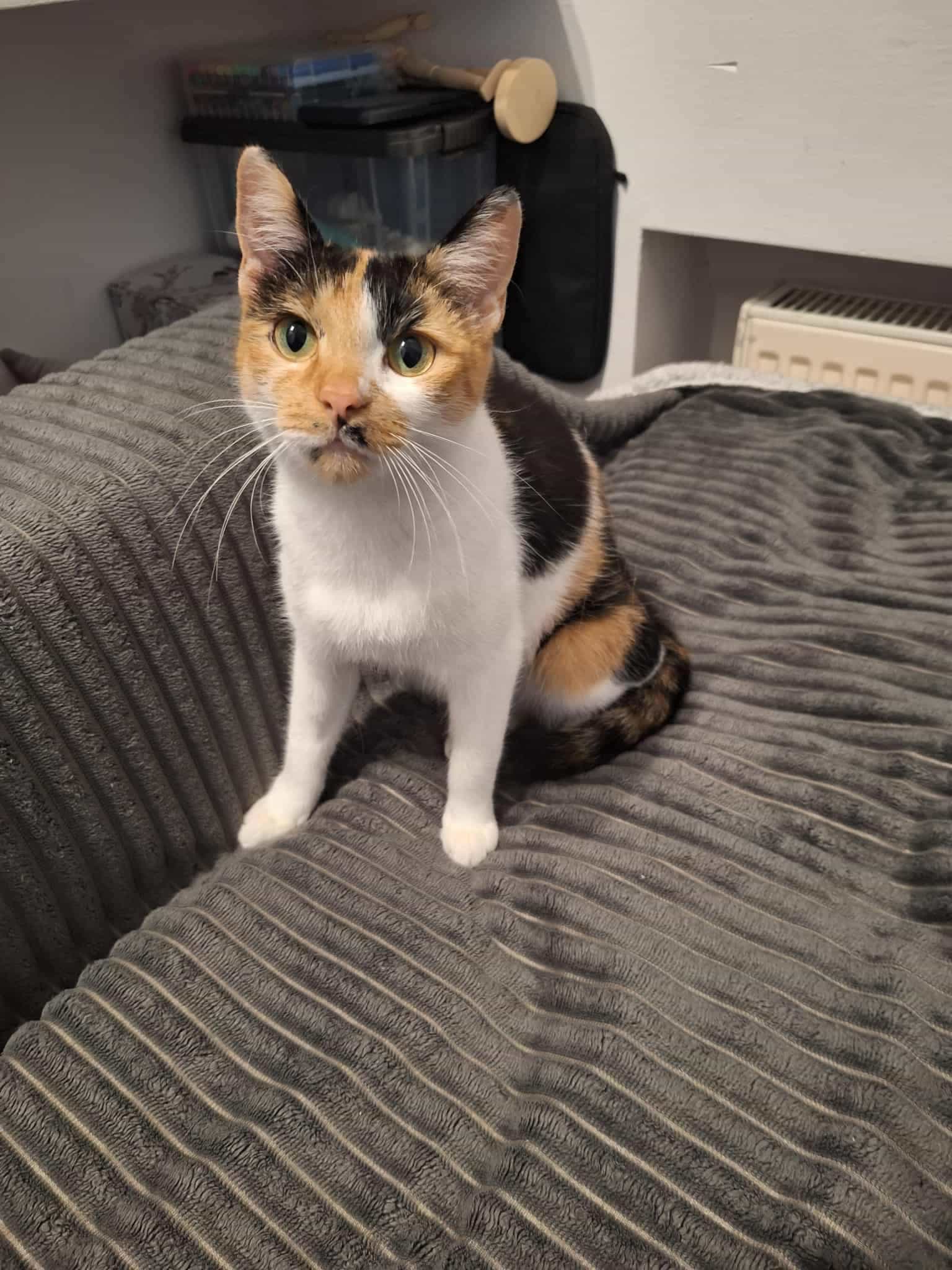 Niesamowicie urocza trójkolorowa kotka – prawdziwe słoneczko w domu.