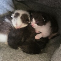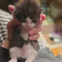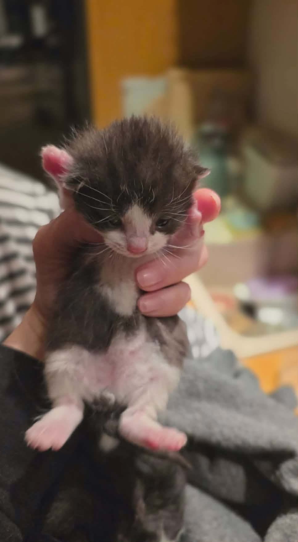 Bergamo to maleńki kocurek urodzony w kwietniu 2026 roku. Jest jeszcze naprawdę malutki — wciąż karmiony butelką, dlatego wymaga troskliwej opieki niemal przez całą dobę.
