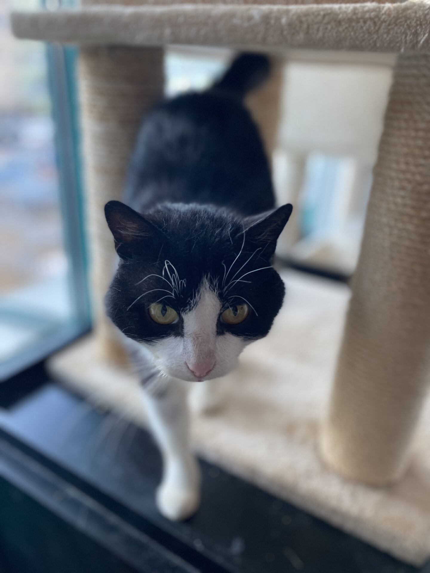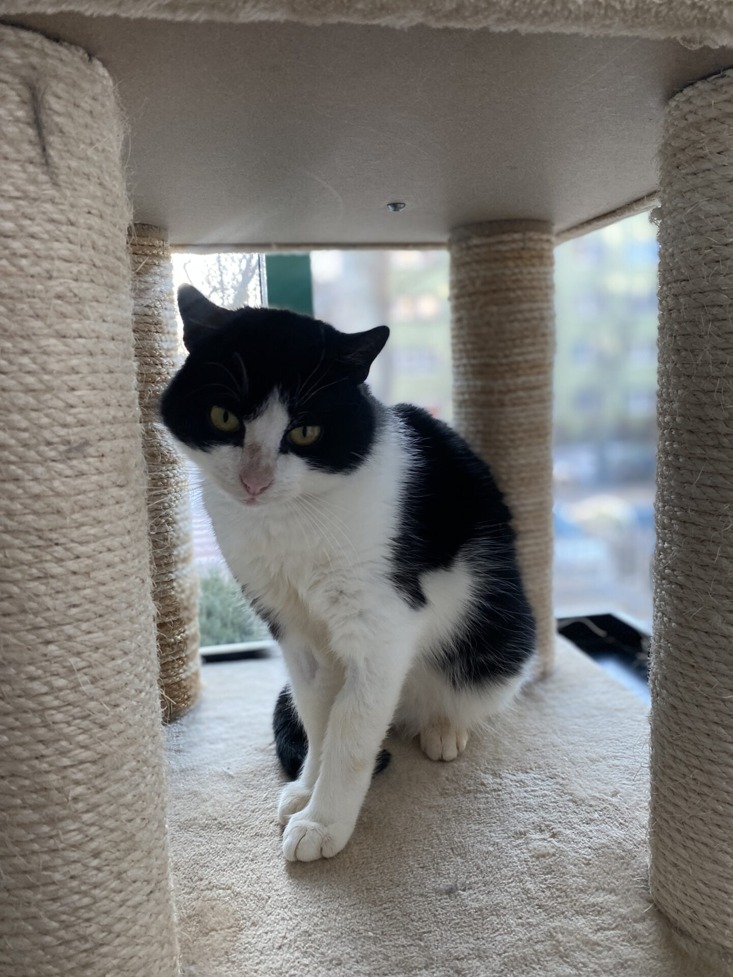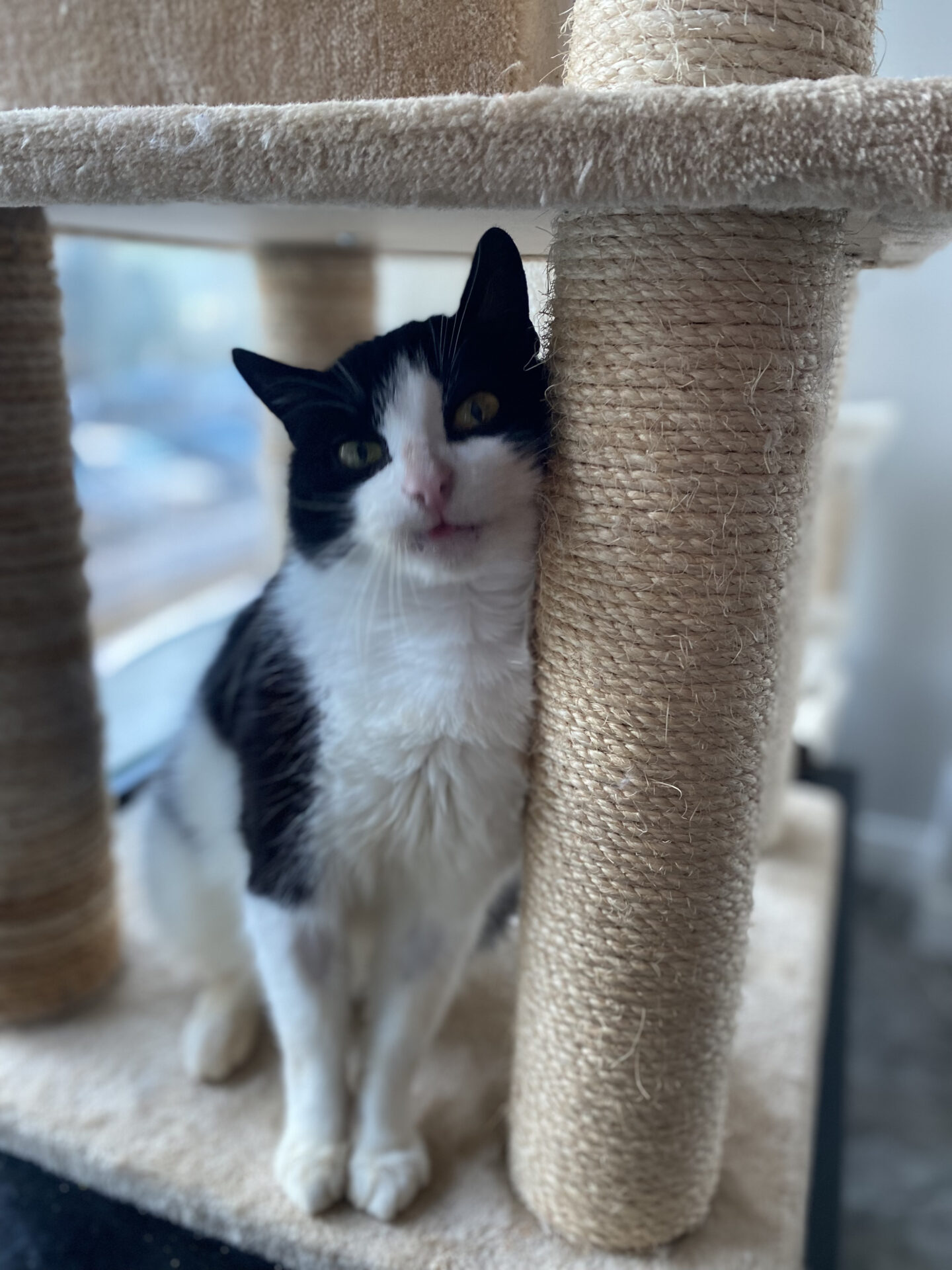 To kot po przejściach, który naprawdę zasługuje na drugą szansę i własną kanapę.