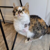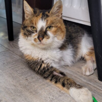 Laguna to kotka, która nie rzuca się w oczy od pierwszej chwili – jednak wystarczy dać jej trochę czasu, aby dostrzec jej cichą, delikatną obecność. Ta piękna tricolorka urodziła się w styczniu 2022 roku i mimo trudniejszych doświadczeń (ma amputowaną jedną łapkę) radzi sobie w codziennym życiu bardzo dobrze.