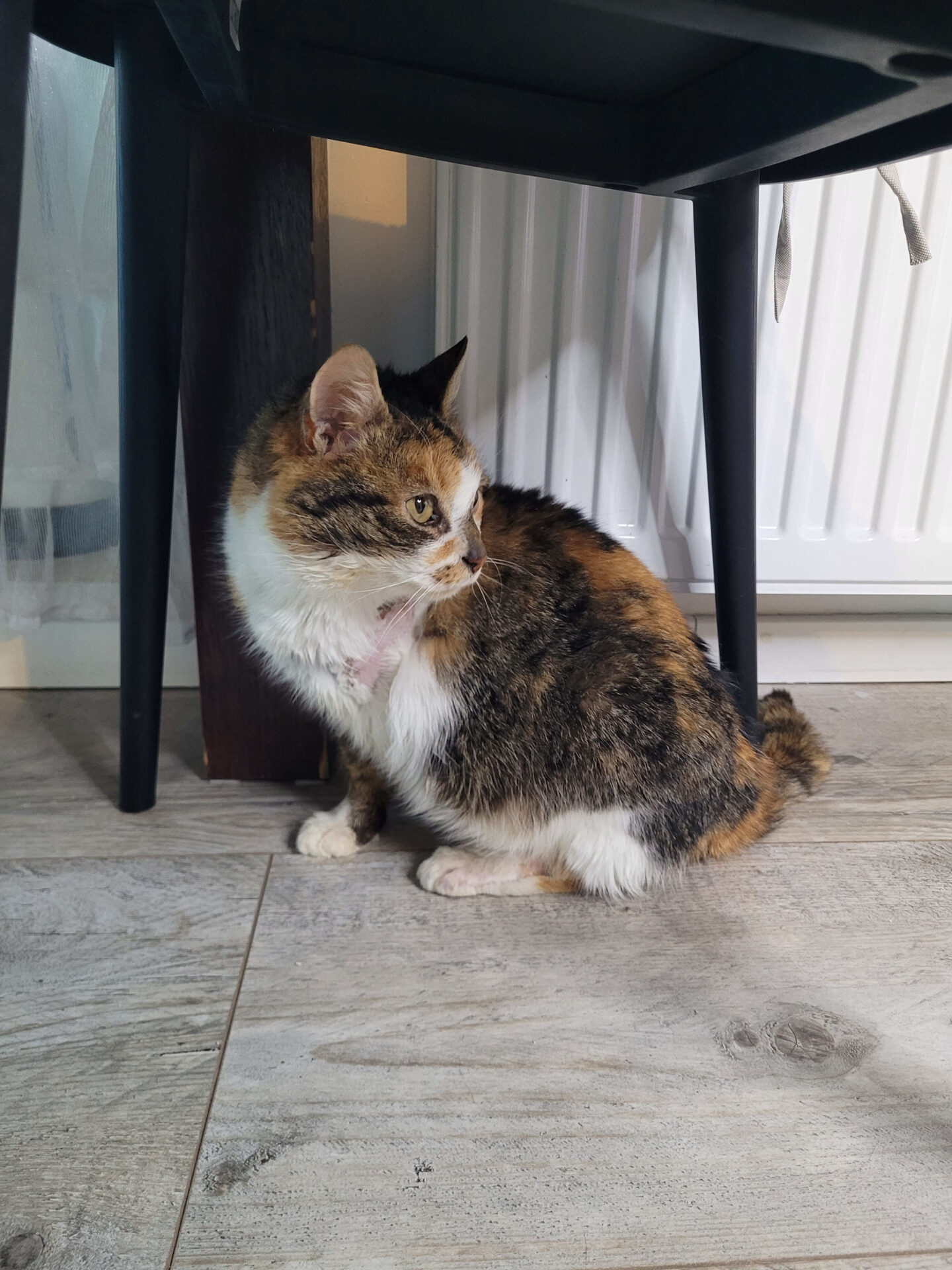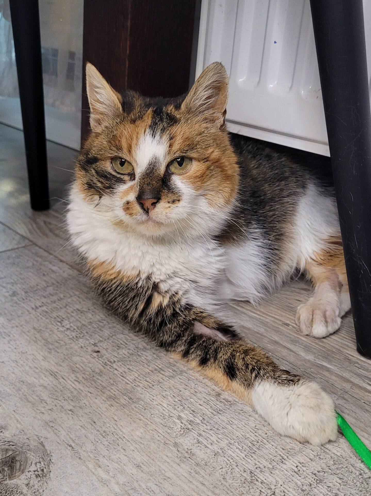 Laguna to kotka, która nie rzuca się w oczy od pierwszej chwili – jednak wystarczy dać jej trochę czasu, aby dostrzec jej cichą, delikatną obecność. Ta piękna tricolorka urodziła się w styczniu 2022 roku i mimo trudniejszych doświadczeń (ma amputowaną jedną łapkę) radzi sobie w codziennym życiu bardzo dobrze.