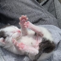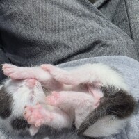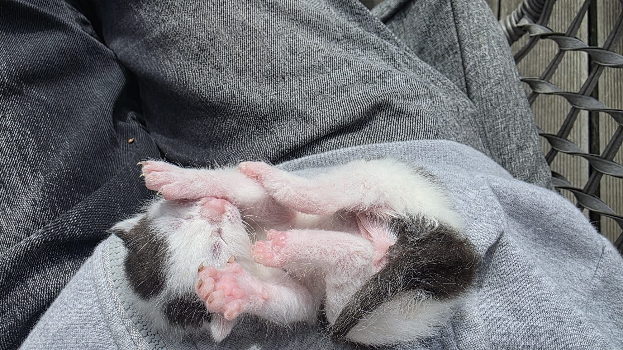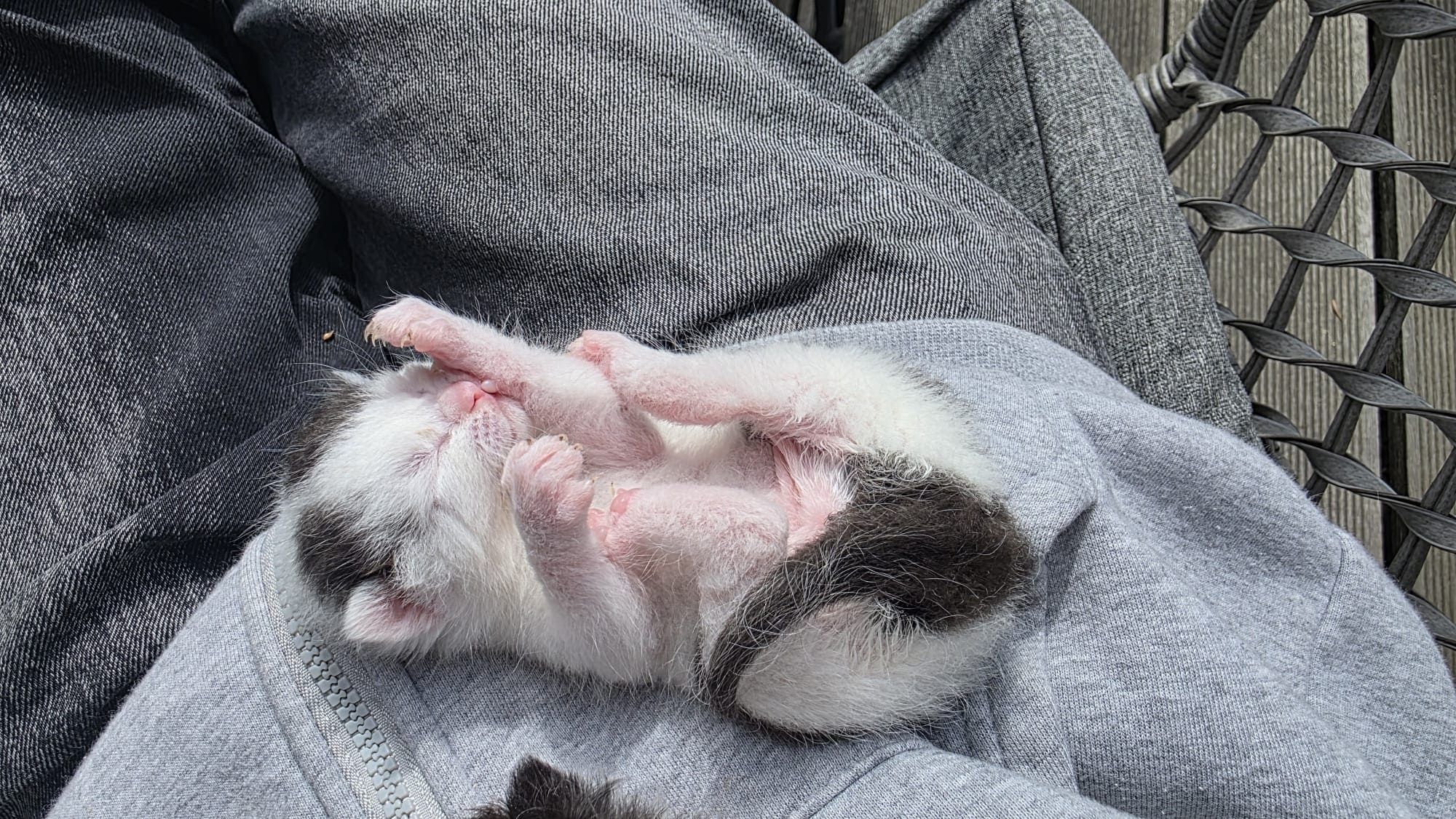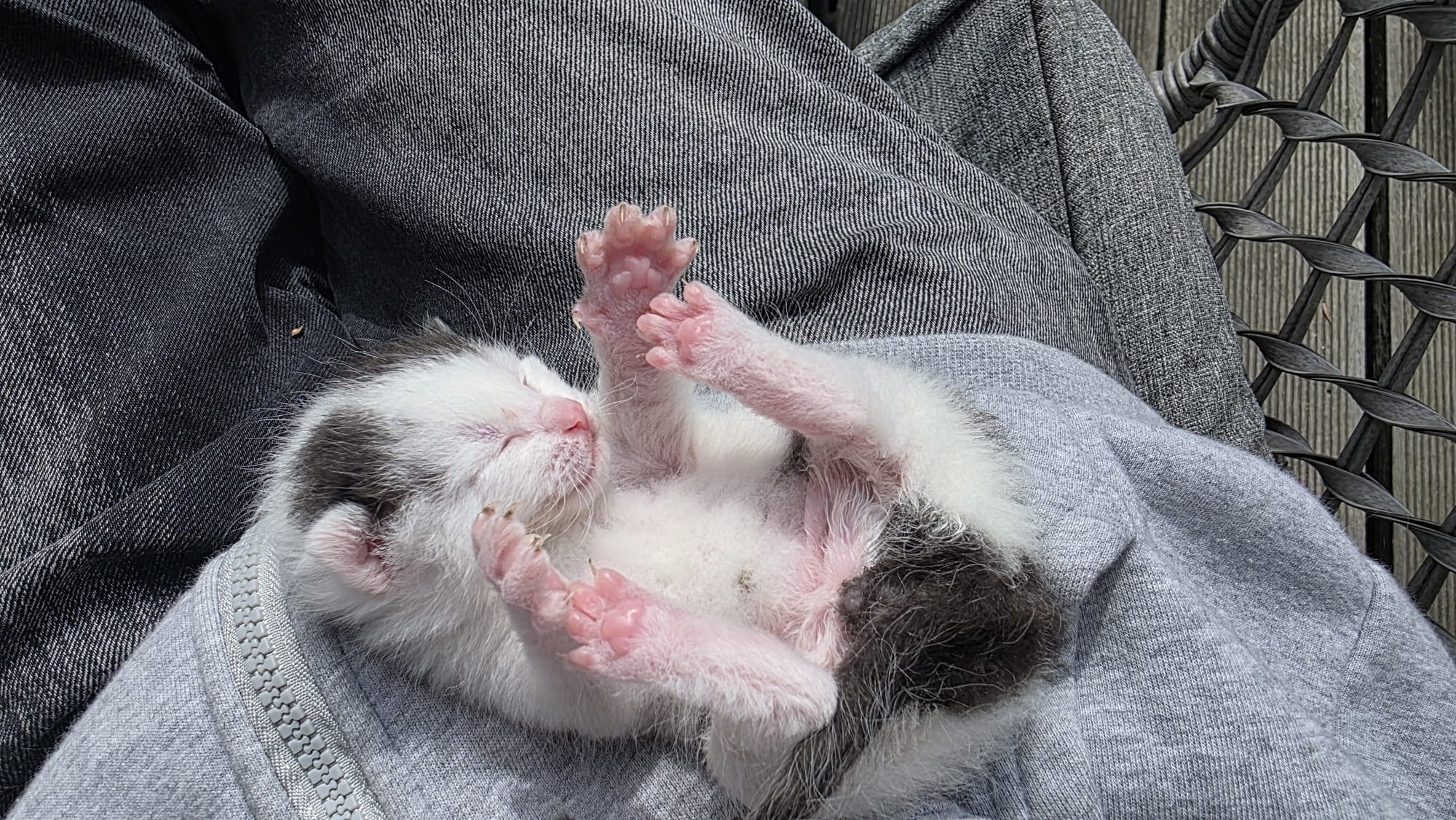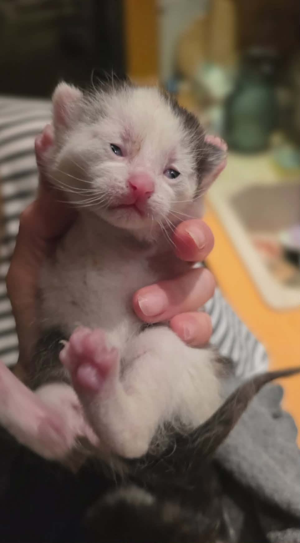 Milano to maleńki kocurek urodzony w kwietniu 2026 roku. Jest jeszcze naprawdę malutki — wciąż karmiony butelką, dlatego wymaga troskliwej opieki niemal przez całą dobę.