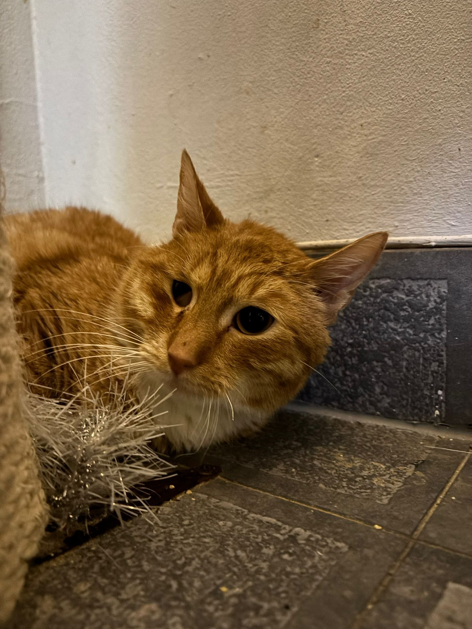 Obecnie przebywa w siedzibie Fundacji, ale hałas i ciągłe zmiany bardzo go stresują. Większość czasu spędza schowany. Dopiero gdy robi się cicho, wychodzi i domaga się głasków, pokazując, jak bardzo potrzebuje miłości. Kociarnia to nie miejsce dla Szczękosa – on potrzebuje ciszy, stabilizacji i cierpliwego opiekuna, by w pełni zaufać i częściej „odpalać swój traktorek”.