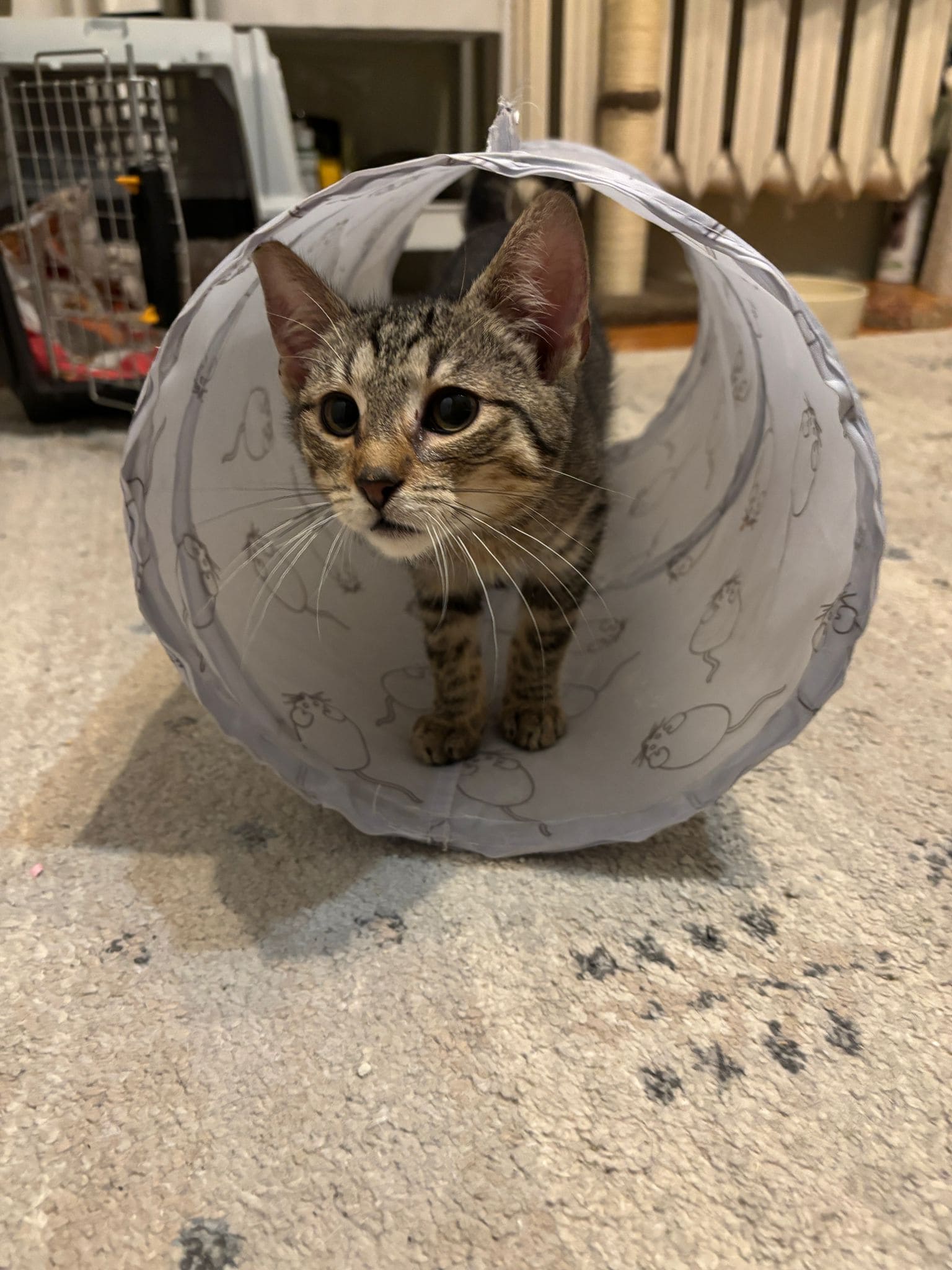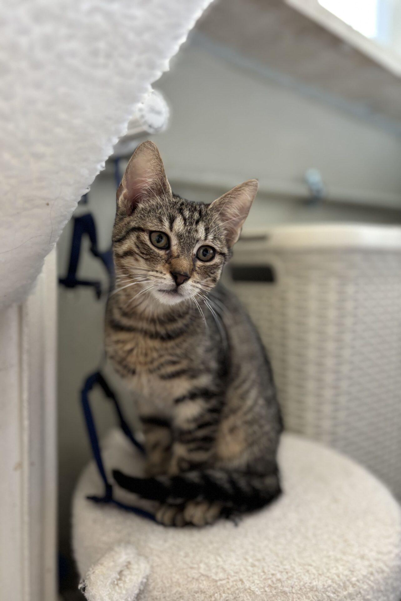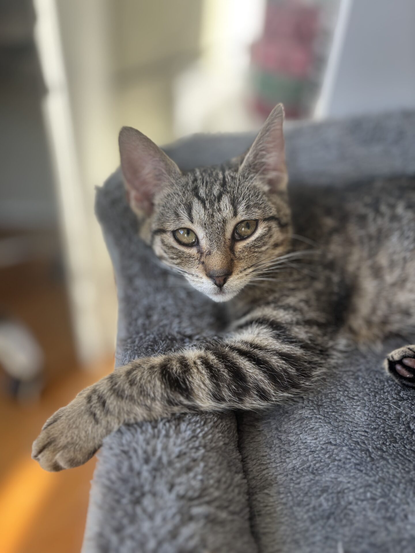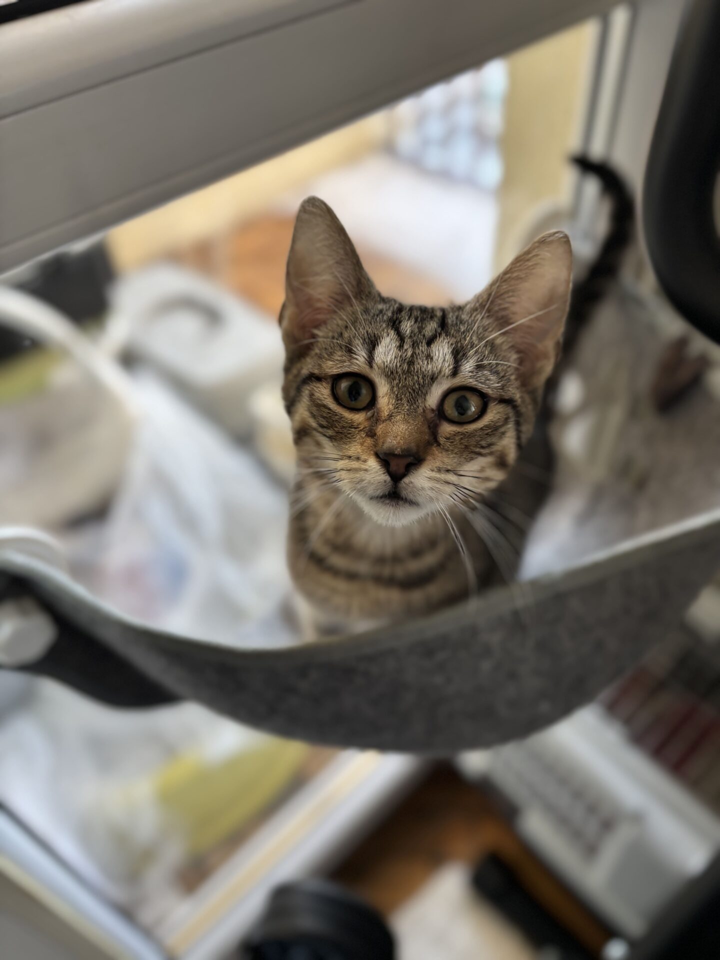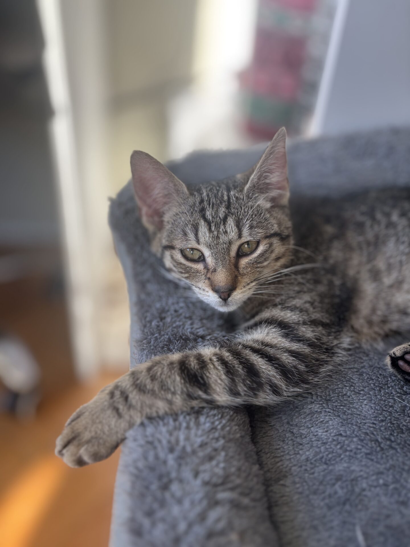 WEASLEY urodził się w sierpniu 2025 roku i jest kotem, który bardzo szybko pokazuje, jak ważny jest dla niego kontakt z człowiekiem. To bury kocur o otwartym charakterze – ciekawski, towarzyski i aktywnie obecny w codziennym życiu domu. 🐾