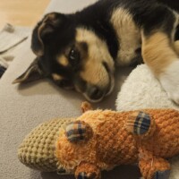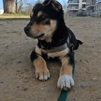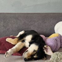 Jeśli chodzi o czystość, maty ogarnia w około 90% – najczęściej załatwia się właśnie na nie, choć sporadycznie zdarzają się wpadki, co jest zupełnie normalne u szczeniaka. Nauka załatwiania się na dworze wciąż jest przed nią.