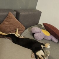 W nowym domu warto podstawić coś miękkiego przy kanapie, ponieważ zdarza jej się zasnąć tak głęboko, że przy obracaniu… spada z niej. 😆