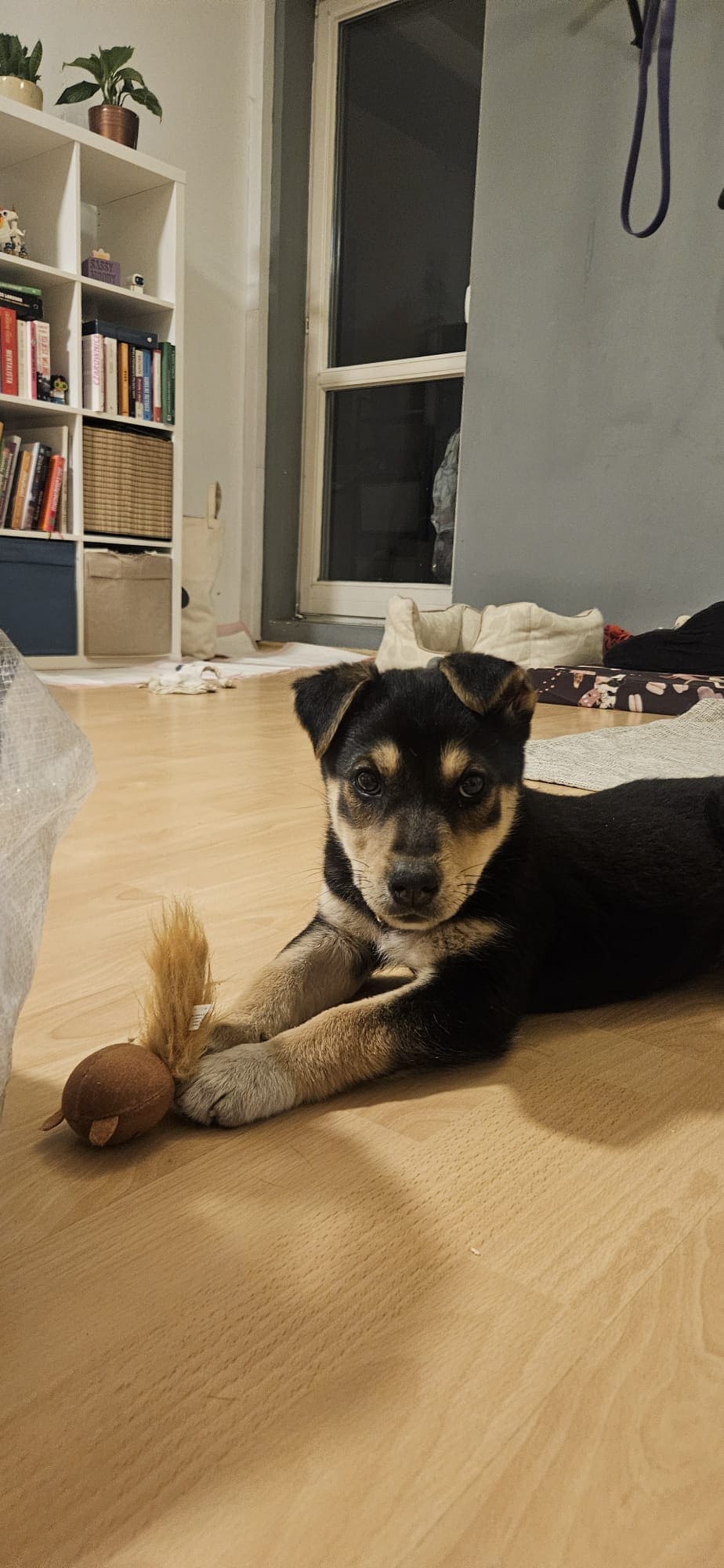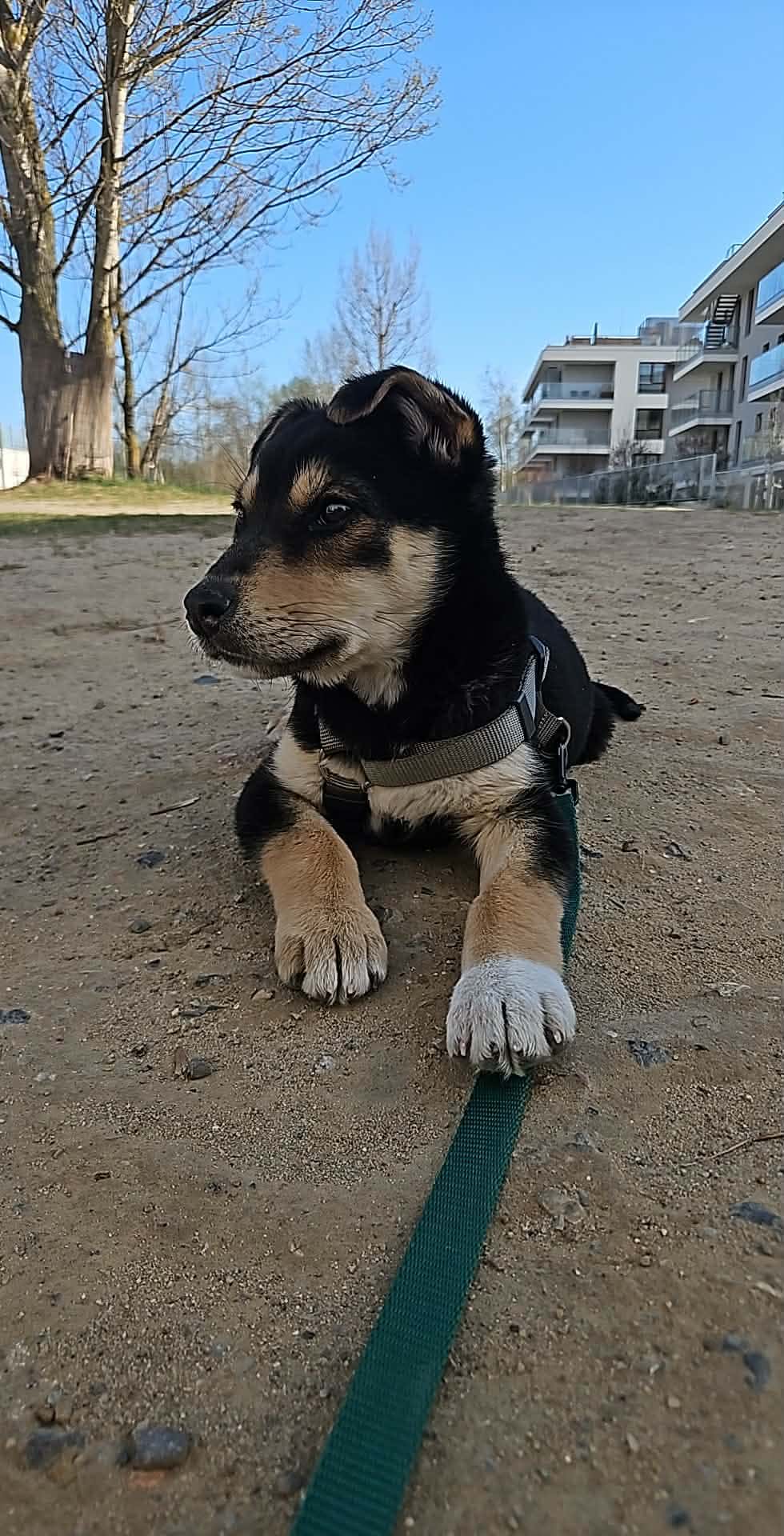 Jeśli chodzi o czystość, maty ogarnia w około 90% – najczęściej załatwia się właśnie na nie, choć sporadycznie zdarzają się wpadki, co jest zupełnie normalne u szczeniaka. Nauka załatwiania się na dworze wciąż jest przed nią.