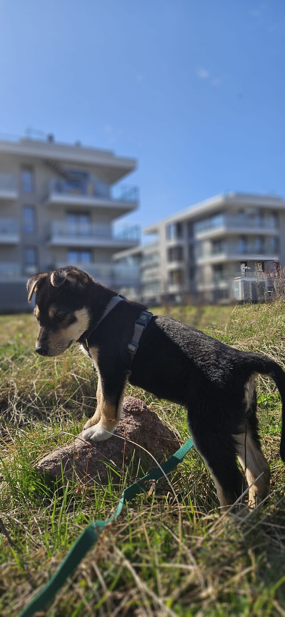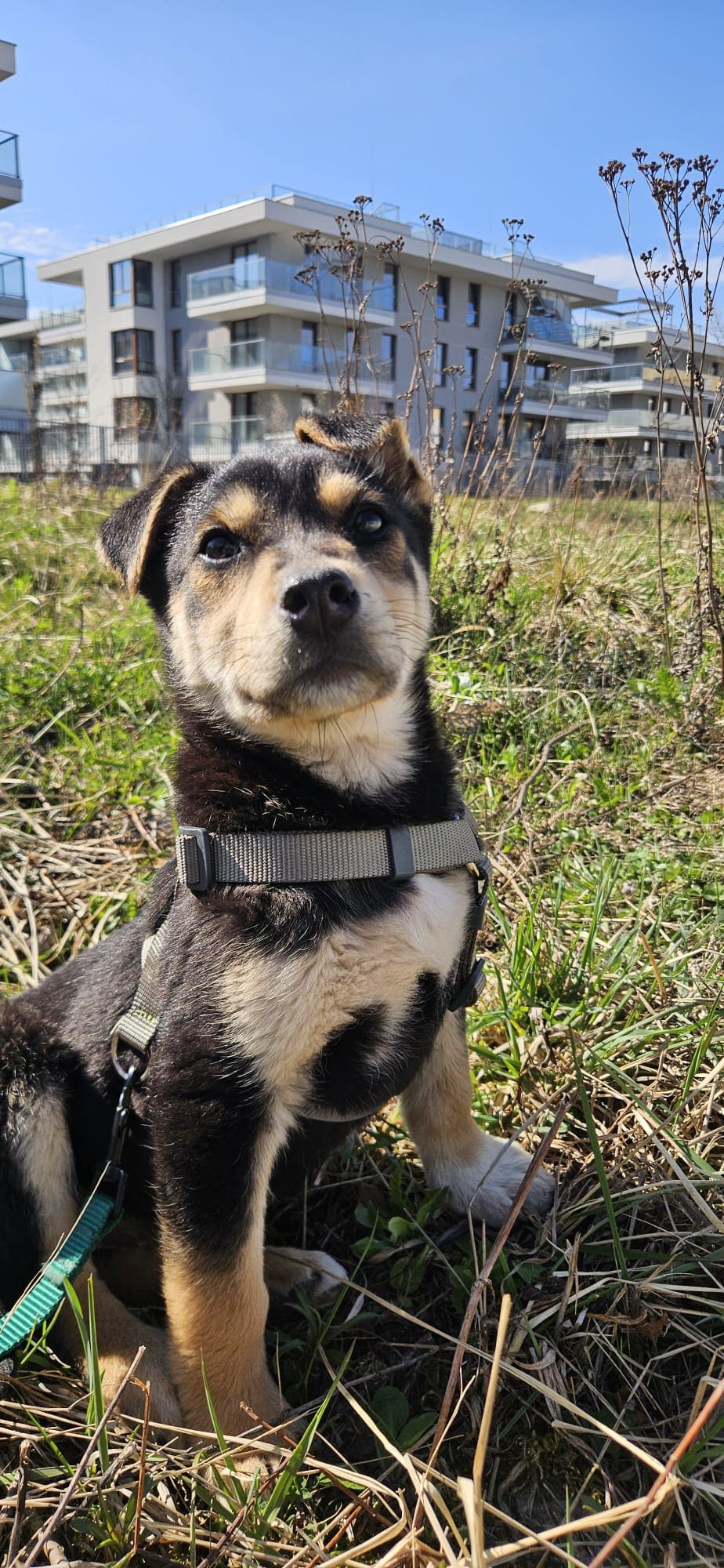 Szelki zakłada bez problemu, a kąpiele znosi całkiem dzielnie. Co istotne, nie boi się burzy.