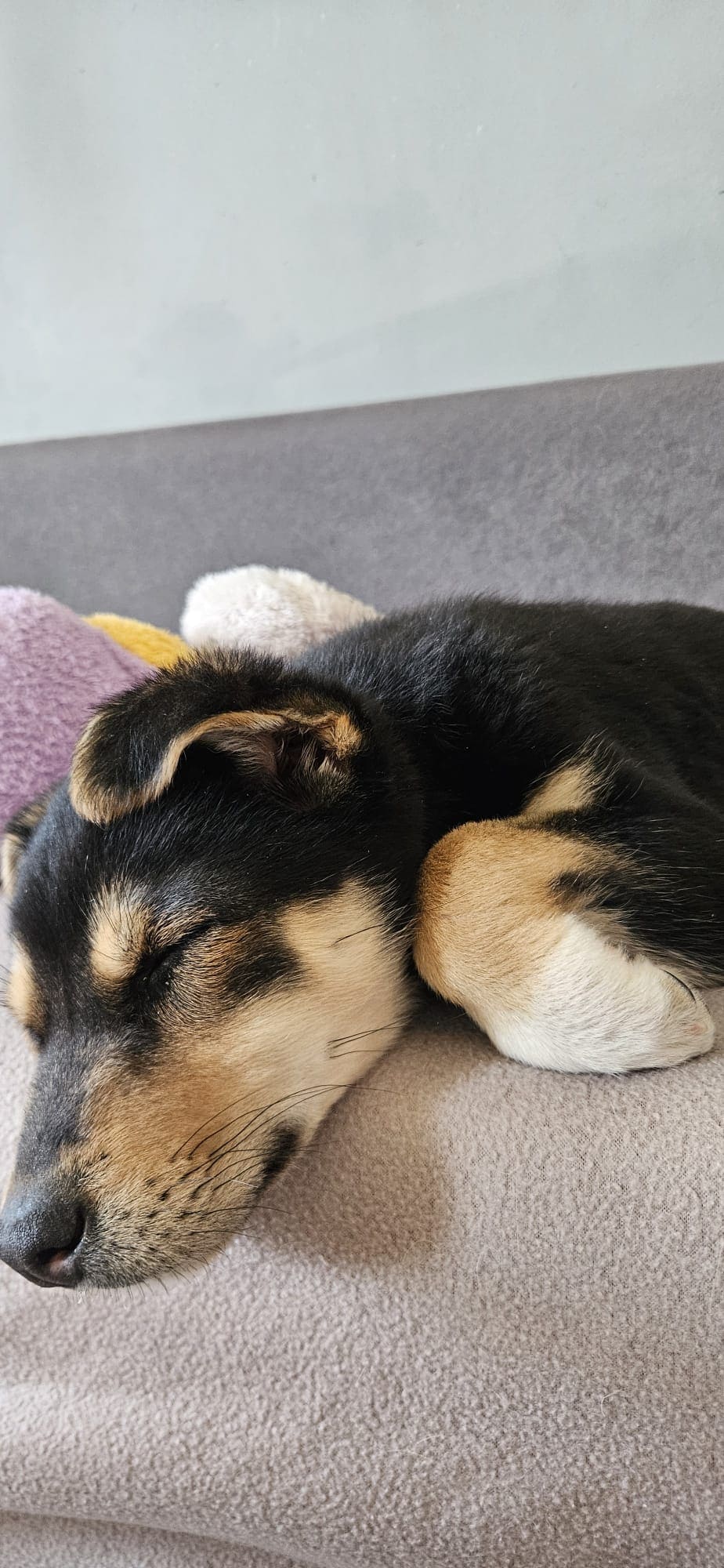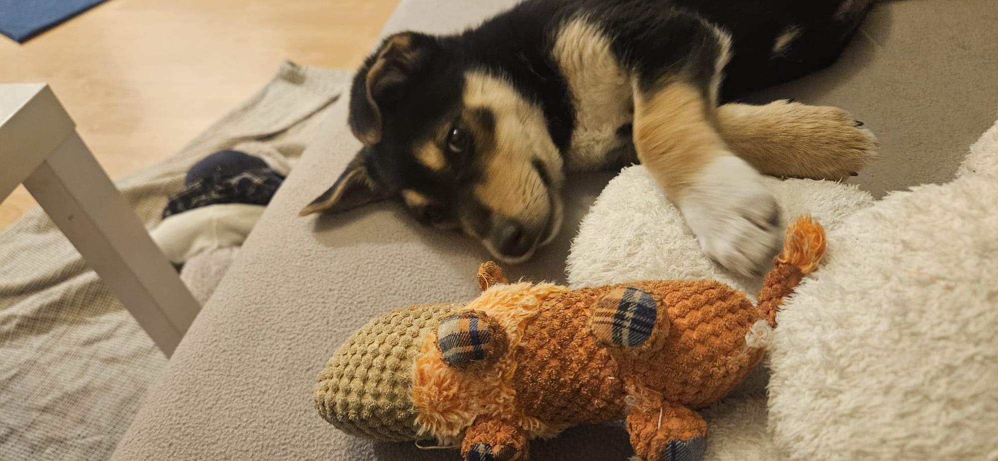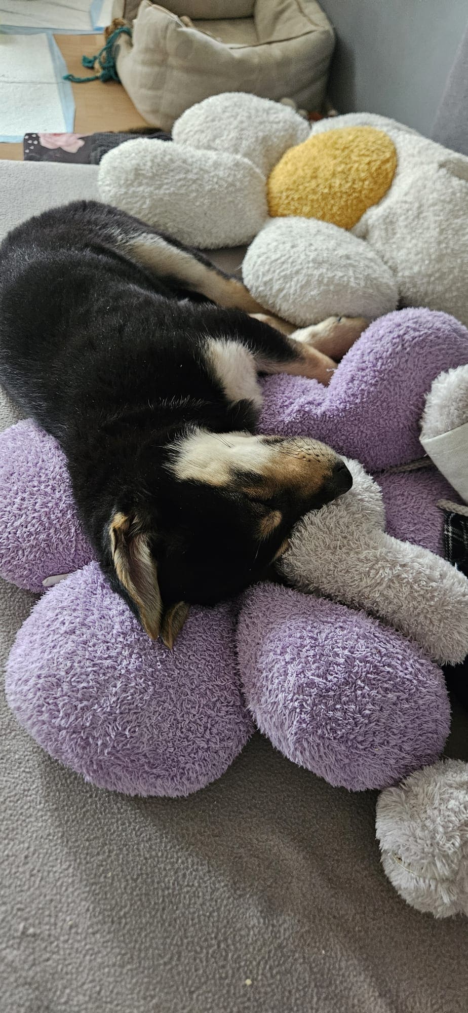 W nowym domu warto podstawić coś miękkiego przy kanapie, ponieważ zdarza jej się zasnąć tak głęboko, że przy obracaniu… spada z niej. 😆
