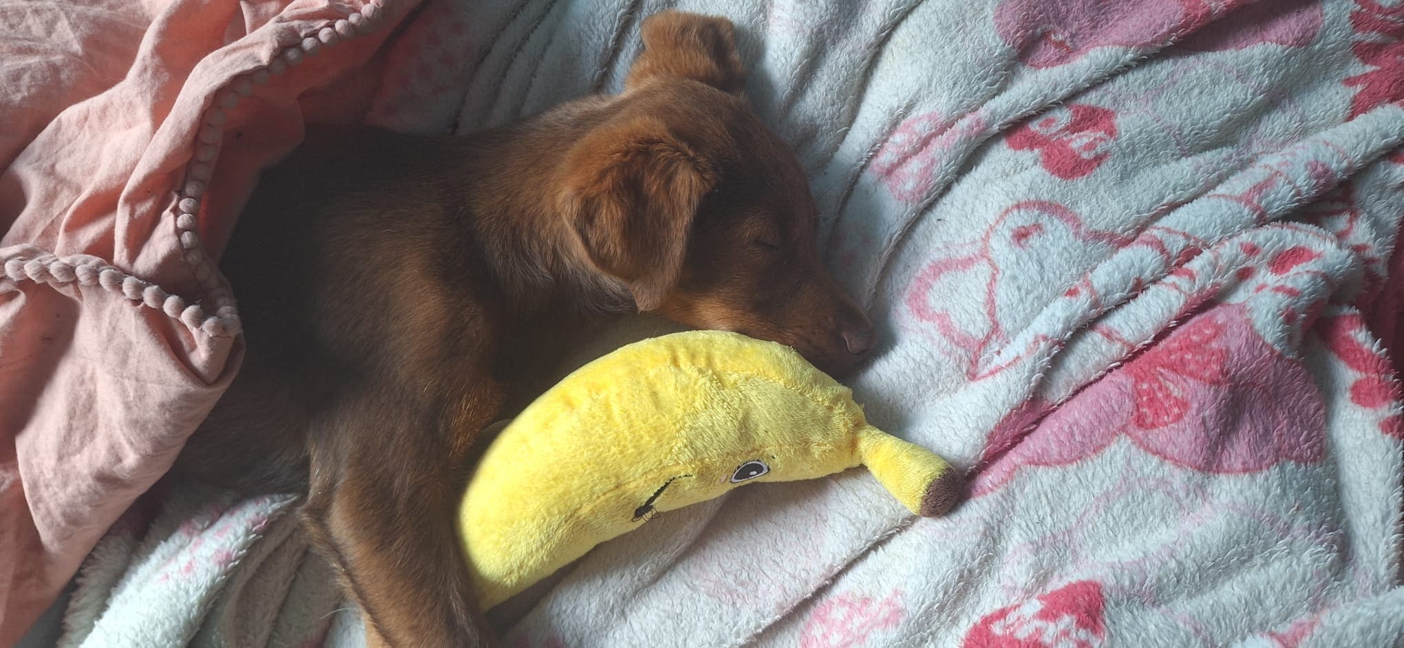 Po mieszkaniu porusza się póki co nie pewnie. Chodz jest bardzo wszystkiego ciekawy. Zalatwia się ładnie ma mate chodz zdarzają się jeszcze wpadki 🙈 I jak to u szczeniaków zdarza się że coś pogryzie. 😁