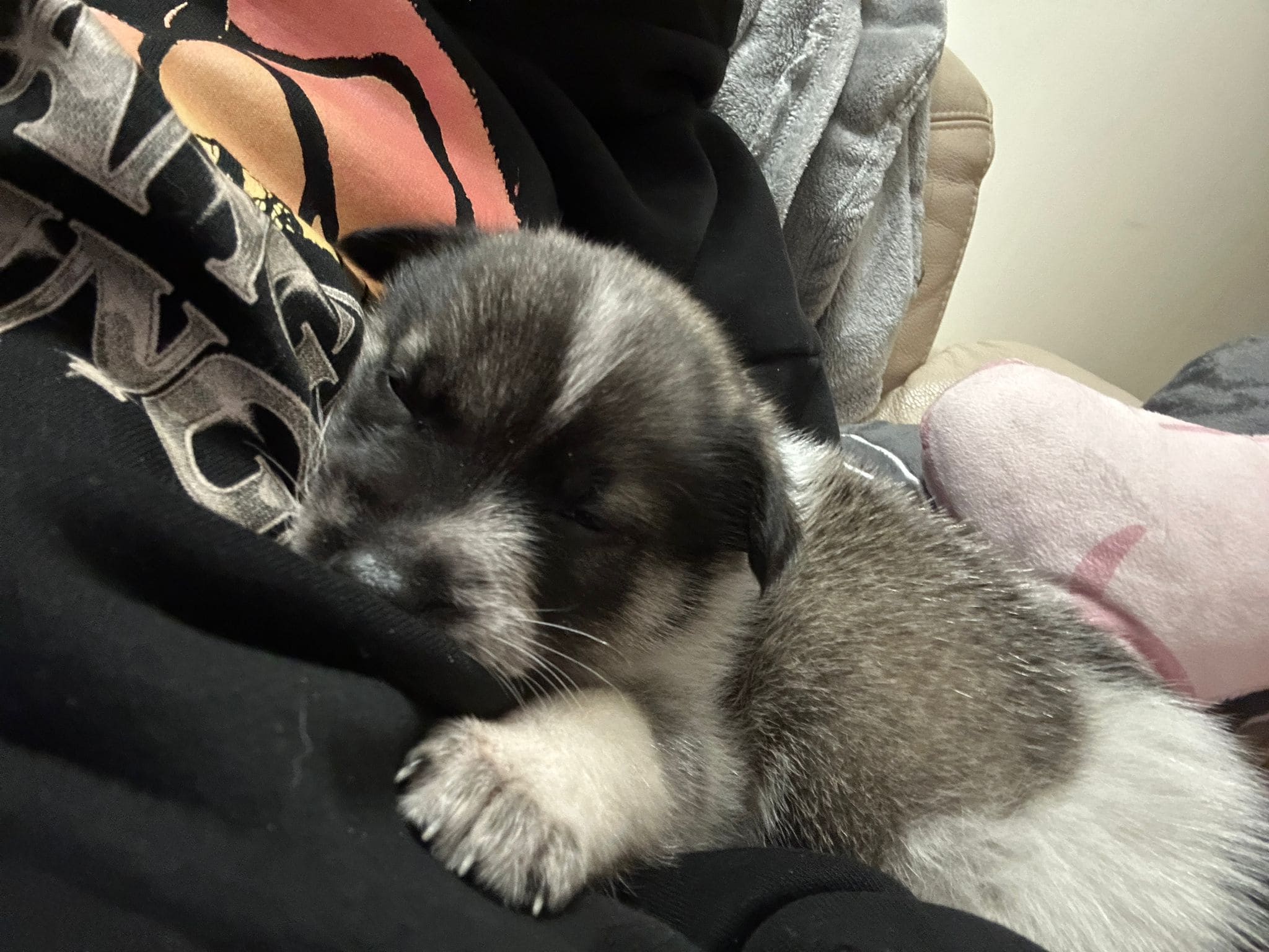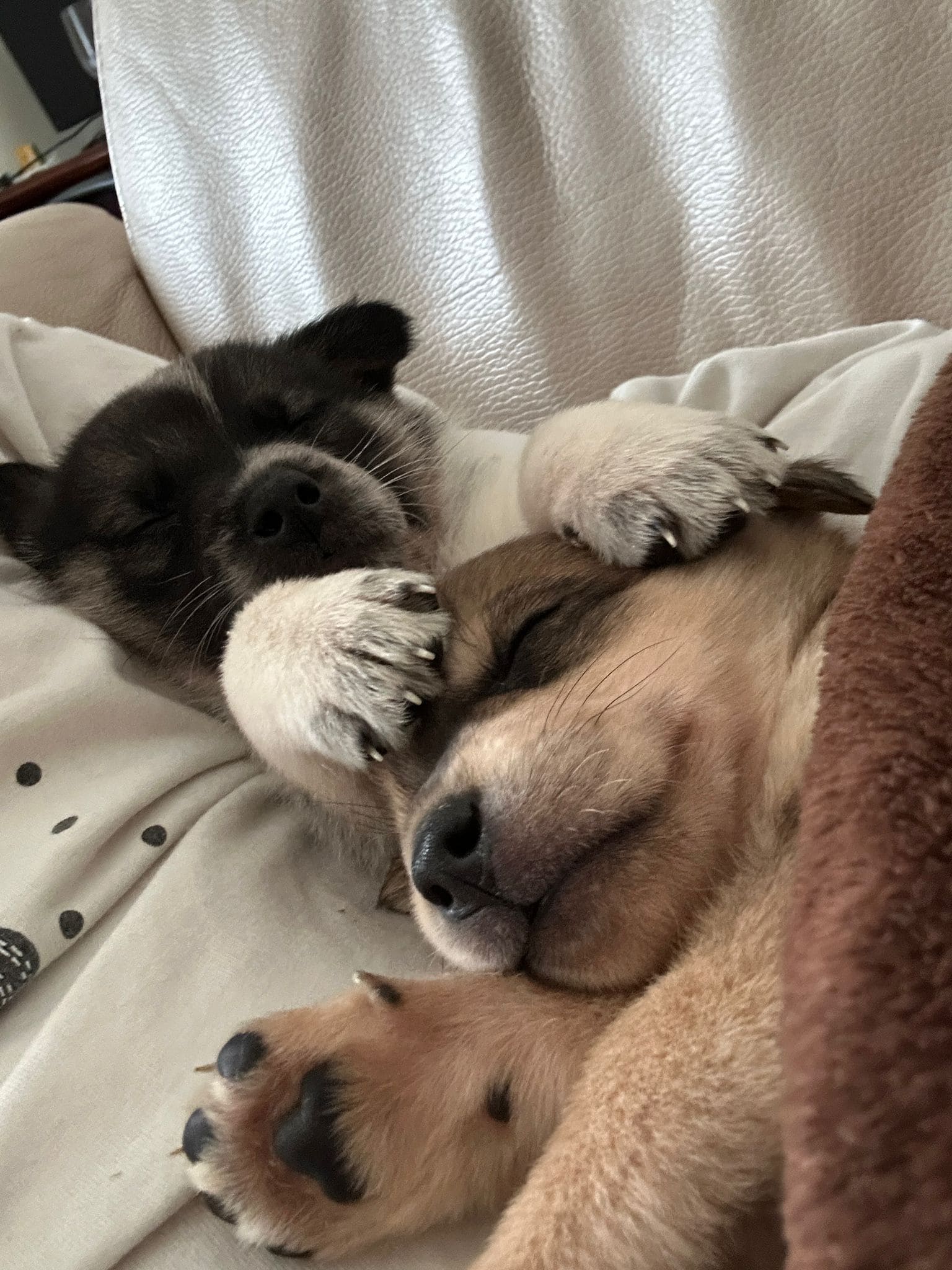 Ziomek to ciekawski świata maluch – każdy dzień spędza na nauce, jak być prawdziwym psem. Oprócz tego uwielbia zabawę mini szarpakiem, przepychanki z bratem, jedzenie, a także… słodkie drzemki na kolanach tymczasowego opiekuna 🐶💛